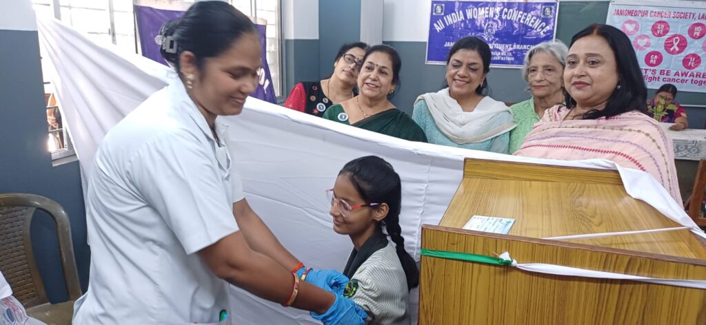 जमशेदपुर। बारीडीह हाई स्कूल में एआईडब्ल्यूसी (AIWC) कनस्टिट्यूएंट शाखा के तत्वावधान में एक HPV (Human Papillomavirus) टीकाकरण अभियान का सफल आयोजन किया गया। यह अभियान जमशेदपुर कैंसर सोसाइटी, लेडीज़ कमेटी और मेहरबाई टाटा मेमोरियल हॉस्पिटल (MTMH) के सहयोग से चलाया गया।
