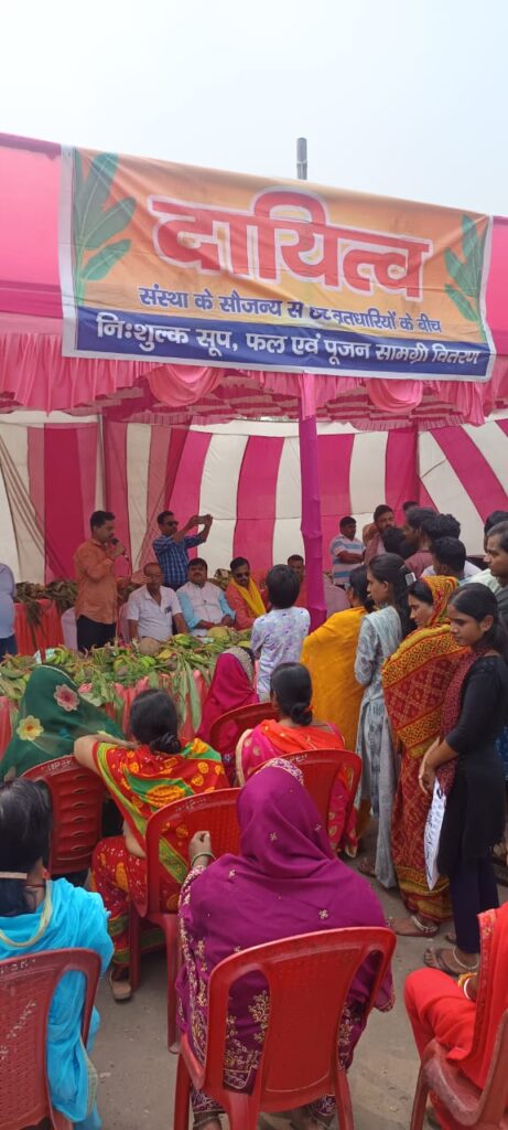 ज्ञात हो कि सामाजिक संस्था ‘दायित्व’ विगत 10 वर्षों से लगातार लोक आस्था के महापर्व छठ पूजा के मौके पर इस सेवा शिविर का आयोजन बर्मामाइन्स दुर्गा पूजा मैदान में करती आ रही है। इस शिविर का लाभ उठाकर बर्मामाइंस और आसपास के क्षेत्र के जरूरतमंद लोग पूजा सामग्री प्राप्त करते हैं।इस विशाल सेवा शिविर को सफल बनाने में संस्था के अध्यक्ष दिलीप झा, कोषाध्यक्ष सुमन पांडेय, गौतम सिंह, मंजीत कुमार, आलोक सिंह, हरिशंकर सिंह, आनंतो कुमार, राजेश प्रसाद, अमित झा, आशीष झा, राजू सहित अन्य सदस्यों का मुख्य योगदान रहा।