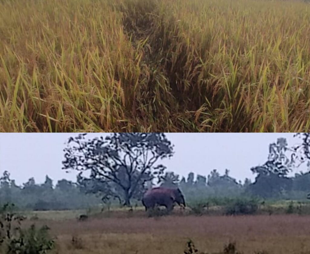चाकुलिया। चाकुलिया प्रखंड स्थित पश्चिम बंगाल की सीमा से सटे सरडीहा पंचायत के दक्षिणशोल गांव में बुधवार की अहले सुबह एक जंगली हाथी ने जमकर उपद्रव मचाया। हाथी ने किसान के खेत में खड़ी धान की फसल को बुरी तरह से बर्बाद कर दिया।हाथी ने फसल को खाकर और अपने पैरों से रौंदकर नष्ट कर दिया। इस घटना से किसान मलय बेरा को भारी आर्थिक नुकसान हुआ है।