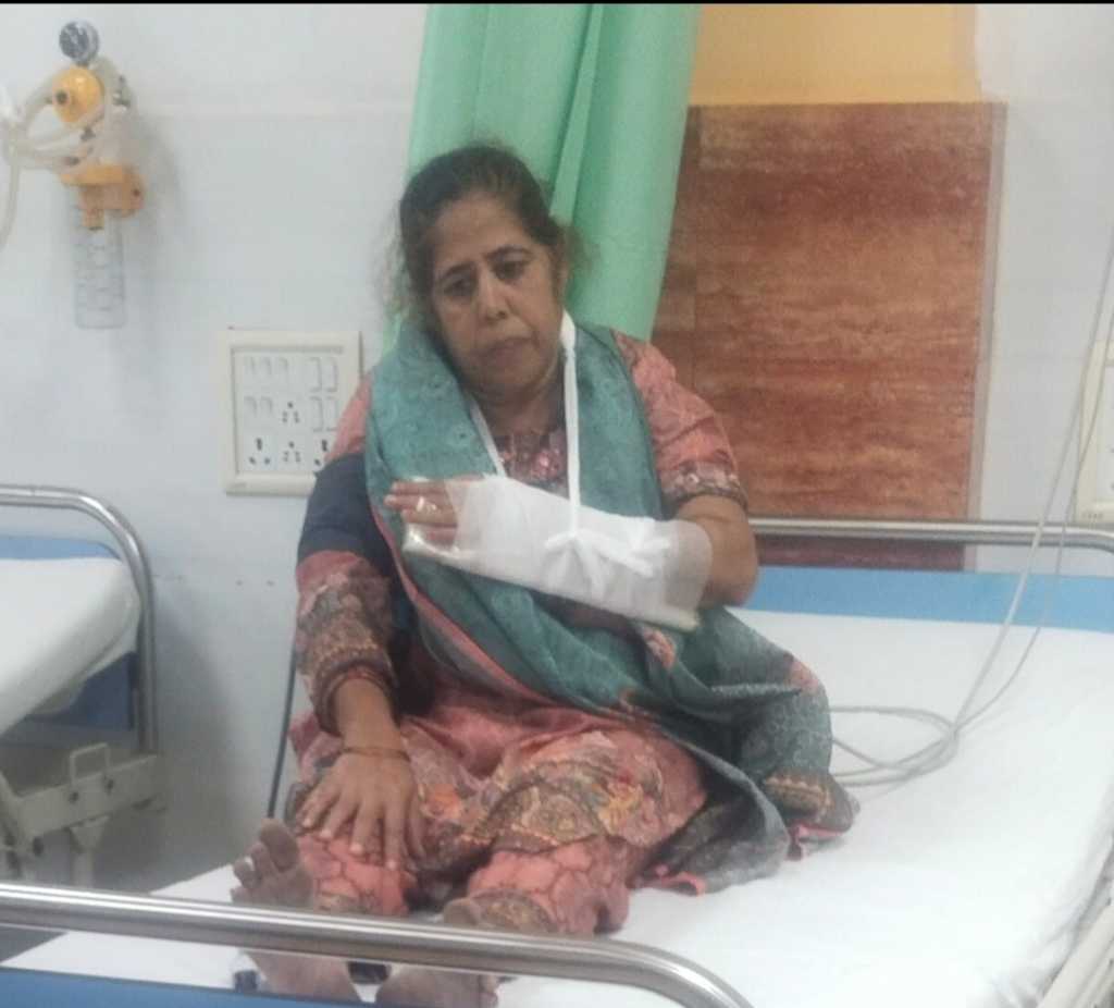 धीरज कौर को टीएमएच (टाटा मुख्य अस्पताल) में भर्ती कराया गया है। एक्स-रे रिपोर्ट में उनकी कलाई की हड्डी टूटने की पुष्टि हुई है। वहीं उनके पति कुलबिंदर सिंह को प्राथमिक उपचार के बाद छुट्टी दे दी गई।