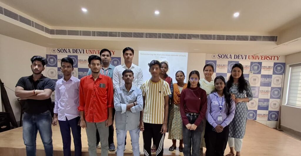 घाटशिला। सोना देवी विश्वविद्यालय में 11 नवंबर को राष्ट्रीय शिक्षक दिवस बड़े उत्साह, श्रद्धा और गरिमा के साथ मनाया गया।यह दिवस भारत के प्रथम शिक्षा मंत्री मौलाना अबुल कलाम आजाद जी की जयंती के उपलक्ष्य में मनाया गया।कार्यक्रम में शिक्षकों और छात्रों ने मिलकर शिक्षा और शिक्षक के महत्व पर सारगर्भित विचार रखे और एक-दूसरे के प्रति सम्मान व्यक्त किया।