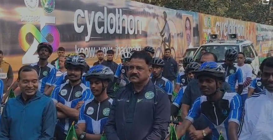 रांची। झारखंड स्थापना दिवस के 25 वर्ष पूरे होने के उपलक्ष्य में गुरुवार को राज्य सरकार की ओर से एक भव्य साइक्लोथॉन रैली का आयोजन किया गया। यह साइक्लोथॉन झारखंड की गौरवशाली यात्रा और संघर्ष की याद को जीवंत करने के उद्देश्य से आयोजित की गई।इस अवसर पर मुख्य अतिथि के रूप में राज्य के खेल मंत्री सुदिव्य कुमार सोनू शामिल हुए।