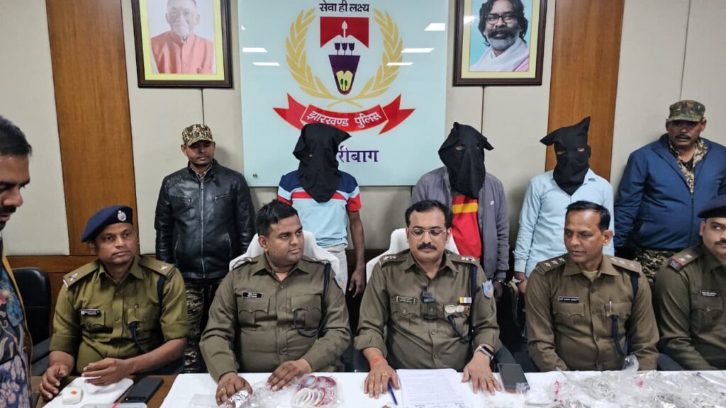 बरही (हजारीबाग):हजारीबाग जिले के बरही में हुए सनसनीखेज ज्वेलरी लूट कांड को पुलिस ने घटना के मात्र 24 घंटे के भीतर सुलझाकर एक बड़ी सफलता हासिल की है। पुलिस की त्वरित और सफल कार्रवाई से न सिर्फ लूटे गए डेढ़ करोड़ रुपये मूल्य के जेवरात बरामद किए गए हैं, बल्कि तीन कुख्यात अपराधियों को भी गिरफ्तार कर लिया गया है। पुलिस की इस तत्परता से पूरे इलाके में राहत और सुरक्षा का भाव बढ़ा है।