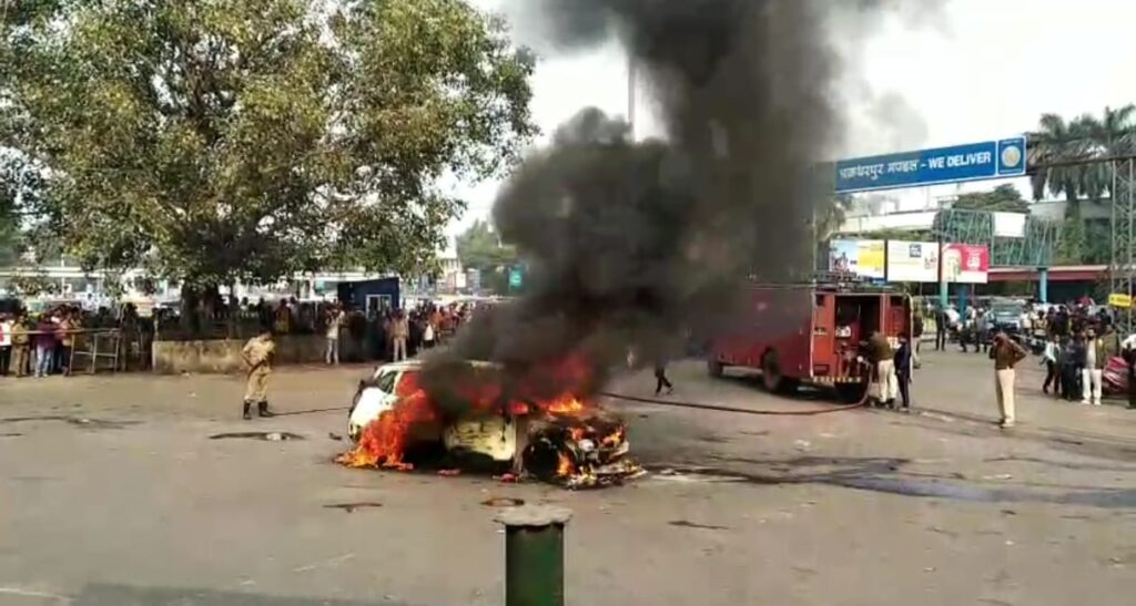 जमशेदपुर:शनिवार सुबह करीब 9:00 बजे टाटानगर रेलवे स्टेशन गेट के बाहर उस समय हड़कंप मच गया जब एक काले रंग की कार (JH05BN 5846) अचानक आग की लपटों में घिर गई। कार के रुकते ही उसमें से धुआं निकलना शुरू हुआ और कुछ ही सेकंड में आग तेजी से भड़क उठी। आसपास मौजूद लोगों और पुलिस की तत्परता से बड़ा हादसा टल गया।