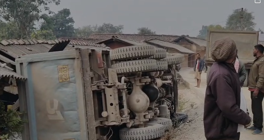 कांड्रा:सरायकेला ज़िले के कांड्रा थाना क्षेत्र अंतर्गत हुदु पंचायत के पालोबेड़ा गांव में रविवार तड़के एक दिल दहला देने वाला सड़क हादसा हुआ। तेज रफ्तार से आ रहा गिट्टी लदा हाईवा (संख्या JH05CD-6403) अनियंत्रित होकर सड़क किनारे बने मिट्टी के घर पर पलट गया, जिसमें सो रहे पिता और उसकी डेढ़ वर्षीय मासूम बेटी की दर्दनाक मौत हो गई।