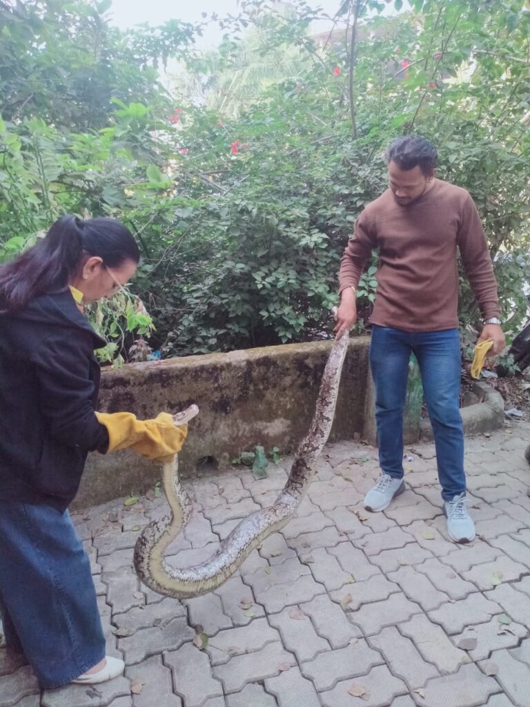 स्थानीय लोगों ने तत्काल इसकी सूचना स्नैक सेवर टीम को दी। सूचना मिलते ही स्नैक सेवर टीम के दो सदस्य तुरंत मौके पर पहुंचे।टीम ने अपनी विशेषज्ञता का उपयोग करते हुए सावधानीपूर्वक अजगर को पकड़ लिया। टीम ने बताया कि सांप पूरी तरह से सुरक्षित था और उसे कोई चोट नहीं आई थी। अजगर को पकड़ने के बाद टीम ने उसे उसके प्राकृतिक आवास में वापस लौटाते हुए सुरक्षित रूप से दलमा जंगल में छोड़ दिया।स्थानीय लोगों ने स्नैक सेवर टीम की त्वरित और कुशल कार्रवाई के लिए उनका हृदय से आभार व्यक्त किया।
