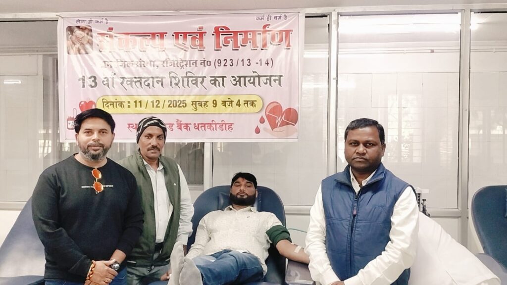 जमशेदपुर: शहर की जानी-मानी सामाजिक संस्था ‘संकल्प एवं निर्माण सामाजिक संस्था’ द्वारा आज 13वां भव्य रक्तदान शिविर आयोजित किया गया। समाज सेवा और स्वास्थ्य जागरूकता के क्षेत्र में सक्रिय यह संस्था लगातार रक्तदान के महत्व को समझाते हुए लोगों को प्रेरित करती आ रही है। इसी क्रम में आयोजित यह शिविर भी पूरी तरह सफल साबित होता दिखा।