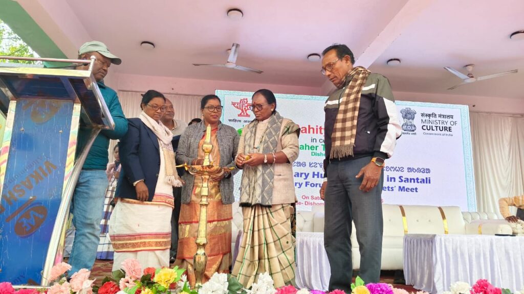 जमशेदपुर: करनडीह स्थित जाहेरथान के पवित्र प्रांगण में शनिवार को ओलचिकी लिपि के शताब्दी समारोह का अत्यंत भव्य और गरिमामयी शुभारंभ हुआ। तीन दिवसीय इस उत्सव के पहले दिन साहित्य सम्मेलन, आदिवासी पुस्तक मेला, कवि सम्मेलन और सेंदरा गीतों पर विचार-मंथन के साथ उत्सव की शुरुआत की गई। यह पूरा आयोजन ओलचिकी लिपि के 100 वर्ष पूरे होने के उपलक्ष्य में किया जा रहा है, जिसका समापन 29 दिसंबर को राष्ट्रपति द्रौपदी मुर्मू की उपस्थिति में होगा।
