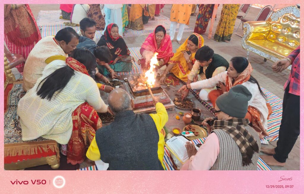 कथा की समाप्ति के उपरांत आयोजित हवन अनुष्ठान में यजमान के रूप में श्री संजय गुप्ता एवं श्रीमती रूपा गुप्ता ने आहुतियां दीं। मंत्रोच्चार के बीच हुए इस हवन में भारी संख्या में बस्तीवासी और श्रद्धालु शामिल हुए। वातावरण धूप-अगरबत्ती की सुगंध और धार्मिक जयघोष से पवित्र हो उठा। श्रद्धालुओं ने विश्व शांति और परिवार के कल्याण की कामना के साथ अग्नि देव को आहुति अर्पित की।