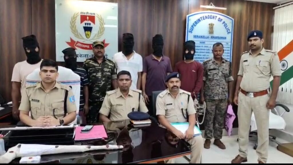 सरायकेला। आगामी त्योहारों को देखते हुए चलाए जा रहे विशेष अभियान के तहत, सरायकेला पुलिस को एक बड़ी सफलता मिली है।आदित्यपुर थाना पुलिस ने अपराध की योजना बना रहे पाँच कुख्यात अपराधियों को गिरफ्तार कर लिया है। इनके पास से एक देसी कट्टा, एक राइफल, और गोलियां भी बरामद हुई हैं।गिरफ्तार किए गए अपराधियों की पहचान करण कुमार, टुनू लोहार, करण राय, अंगद कुमार और गोपाल दास उर्फ चौड़ा के रूप में हुई है.