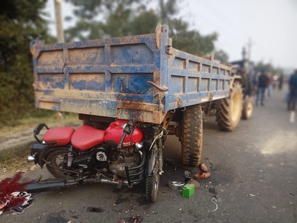 घाटशिला: घाटशिला थाना क्षेत्र अंतर्गत पावड़ा गांव के समीप एनएच-18 पर रविवार दोपहर एक दर्दनाक सड़क हादसे में 25 वर्षीय युवक अरबाज अली की जान चली गई। घटना सर्विस रोड पर खड़े एक ट्रैक्टर के नीचे बाइक के घुस जाने से हुई। इस घटना के बाद स्थानीय ग्रामीणों में भारी आक्रोश देखा गया और करीब दो घंटे तक मौके पर तनाव की स्थिति बनी रही।
