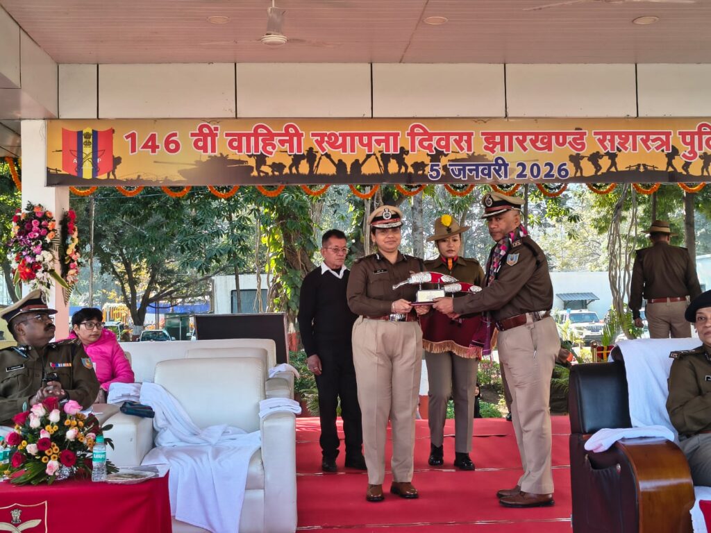 राँची : झारखंड पुलिस की सबसे गौरवशाली वाहिनी ‘झारखंड सशस्त्र पुलिस-1’ (JAP-1) ने सोमवार को अपना 146वां स्थापना दिवस हर्षोल्लास के साथ मनाया। डोरंडा स्थित वाहिनी मुख्यालय में आयोजित इस भव्य समारोह में झारखंड की डीजीपी तदाशा मिश्रा मुख्य अतिथि के रूप में शामिल हुईं। समारोह की शुरुआत शहीद स्मारक पर पुष्पचक्र अर्पित कर शहीदों को नमन करने के साथ हुई।