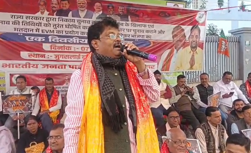 धरने का नेतृत्व कर रहे भाजपा जिला अध्यक्ष सुधांशु ओझा ने हेमंत सरकार पर कड़ा प्रहार किया। उन्होंने कहा कि नगर निकाय चुनाव समय पर कराना सरकार की संवैधानिक जिम्मेदारी है, लेकिन राज्य सरकार जानबूझकर इसे टाल रही है।सरकार को जनता के जनादेश का डर है। बिना निर्वाचित जनप्रतिनिधियों के नगर निकायों का विकास पूरी तरह ठप हो गया है। अधिकारी अपनी मनमानी कर रहे हैं और आम जनता बुनियादी सुविधाओं के लिए तरस रही है।प्रदर्शन के दौरान भाजपा ने मुख्य रूप से तीन मांगों को दोहराया। निकाय चुनावों की तिथि तुरंत घोषित की जाए,चुनाव दलीय आधार (पार्टी सिंबल) पर ही कराए जाएं ताकि राजनीतिक पारदर्शिता बनी रहे और मतदान और मतगणना के लिए इलेक्ट्रॉनिक वोटिंग मशीन का इस्तेमाल हो, जिससे प्रक्रिया तेज और निष्पक्ष हो सके।