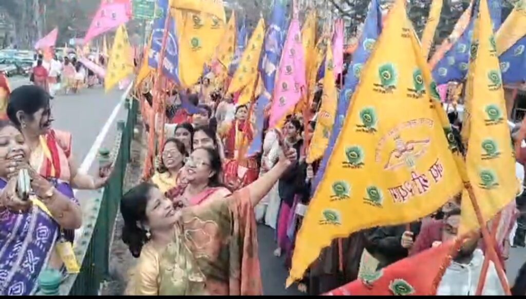 केसरिया और रंग-बिरंगे निशानों से सजी बिष्टुपुर की सड़कें