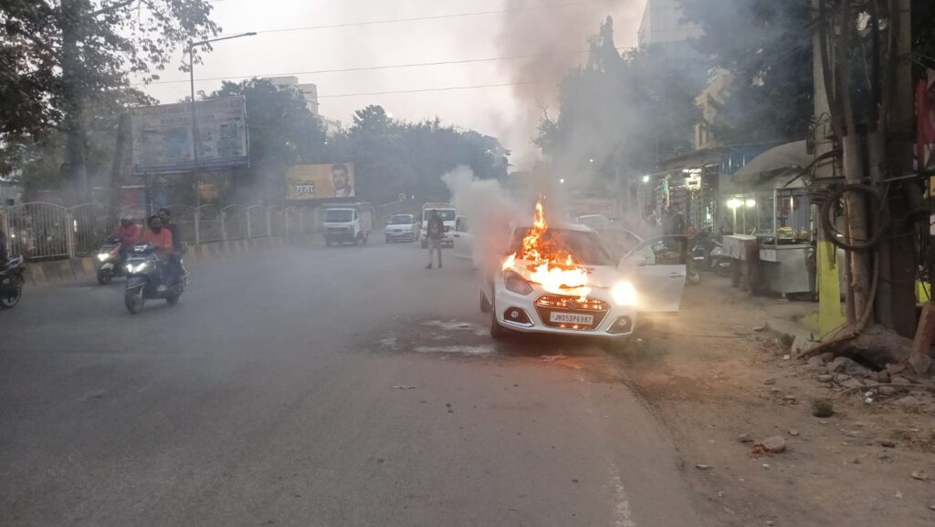 जमशेदपुर:मानगो-डिमना मुख्य मार्ग पर बुधवार को उस वक्त सनसनी फैल गई, जब बीच सड़क पर एक कार धू-धू कर जल उठी। डिमना चौक के समीप हुई इस घटना में कार सवार यात्री बाल-बाल बच गया। देखते ही देखते आग ने इतना विकराल रूप ले लिया कि महज कुछ ही मिनटों में पूरी कार जलकर खाक हो गई।