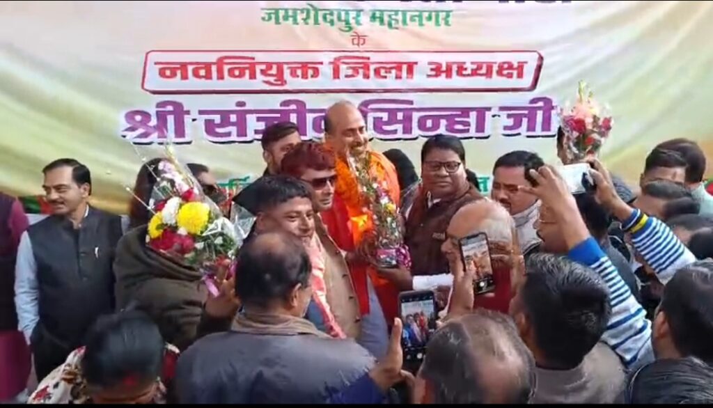 जमशेदपुर । भारतीय जनता पार्टी ने जमशेदपुर के लिए अपने नए सारथी की घोषणा कर दी है। दशकों से संगठन को सींचने वाले जमीनी नेता संजीव सिन्हा को भाजपा का नया जिलाध्यक्ष नियुक्त किया गया है। उनके पदभार ग्रहण समारोह में कार्यकर्ताओं का भारी उत्साह देखने को मिला, जिससे आने वाले दिनों में संगठन की मजबूती का संकेत मिल रहा है।