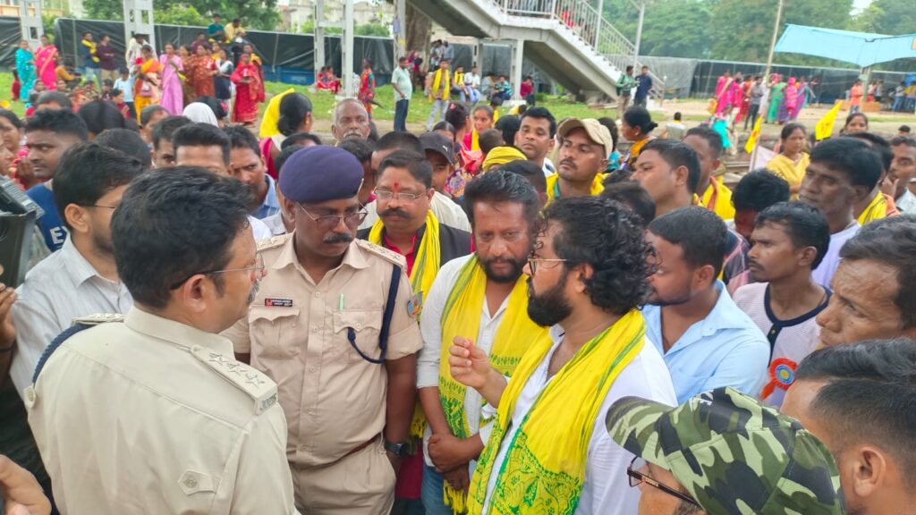 सोनुवा: अपनी मांगों को लेकर कुड़मी समाज द्वारा चलाए जा रहे ‘रेल टेका’ आंदोलन के तहत सोनुवा स्टेशन पर भी प्रदर्शनकारी रेल पटरी पर डटे हुए हैं। दोपहर 2:30 बजे तक आंदोलनकारी ट्रैक खाली करने को तैयार नहीं थे, जिसके कारण रेल यातायात पूरी तरह से बाधित रहा।