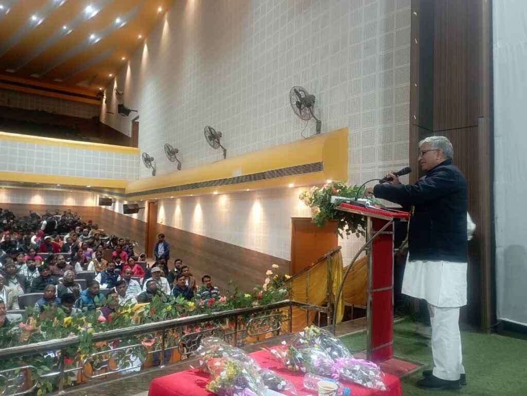 जमशेदपुर: केंद्र सरकार की नीतियों के खिलाफ देश के मजदूरों, किसानों और कर्मचारियों ने आर-पार की लड़ाई का मन बना लिया है। 12 फरवरी 2026 को होने वाली राष्ट्रीय आम हड़ताल ऐतिहासिक होगी। यह महत्वपूर्ण घोषणा अखिल भारतीय राज्य सरकारी कर्मचारी महासंघ के राष्ट्रीय अध्यक्ष सुभाष लांबा ने जमशेदपुर के सिदगोड़ा स्थित बिरसा मुंडा टाउन हॉल में की।