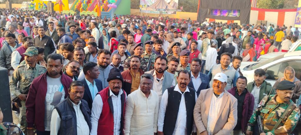 पटमदा: एनएच-33 किनारे स्थित भिलाई पहाड़ी हाट मैदान बुधवार को झारखंडी लोक संस्कृति के रंगों से सराबोर हो उठा। ‘झारखंडी कला संस्कृति मंच’ के बैनर तले आयोजित इस भव्य टुसू मेले में मुख्य अतिथि के रूप में राज्य के परिवहन मंत्री दीपक बिरुआ शामिल हुए। आयोजन समिति के अध्यक्ष पिंटू दत्ता के नेतृत्व में गाजे-बाजे और पारंपरिक नृत्य के साथ उनका जोरदार स्वागत किया गया।