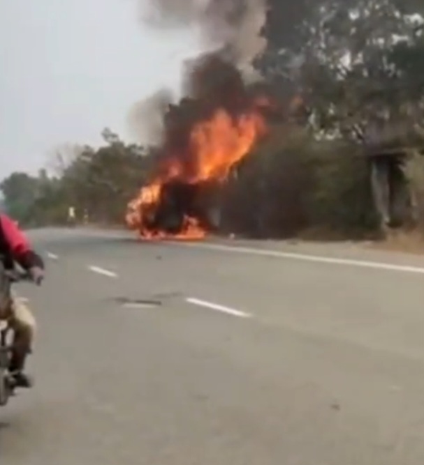 प्राप्त जानकारी के अनुसार, जमशेदपुर के एमजीएम अस्पताल क्षेत्र के निवासी बबन सिंह अपने मालवाहक ऑटो में पेंट और तारपीन के गैलन लादकर डिलीवरी देने चाईबासा जा रहे थे। जैसे ही वे सरायकेला के पठानमारा के पास पहुंचे, ऑटो के इंजन या पिछले हिस्से से अचानक धुआं उठने लगा। इससे पहले कि चालक कुछ समझ पाता, आग की लपटों ने तारपीन के गैलनों को अपनी चपेट में ले लिया। ज्वलनशील पदार्थ होने के कारण आग ने कुछ ही मिनटों में विकराल रूप ले लिया और पूरे ऑटो को अपनी आगोश में ले लिया।