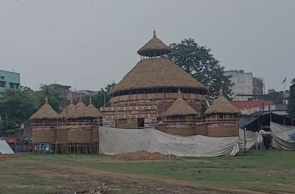 पूजा पंडाल के संरक्षक अभय सिंह ने बताया कि इस पंडाल का निर्माण दो महीने से बंगाल के कुशल कारीगरों द्वारा किया जा रहा है। इसकी सबसे बड़ी खासियत यह है कि यह पूरी तरह से इको-फ्रेंडली है। पंडाल बनाने में सिर्फ पुआल का इस्तेमाल किया गया है और इसे प्राकृतिक रंगों (नेचुरल पेंट) से रंगा जा रहा है।