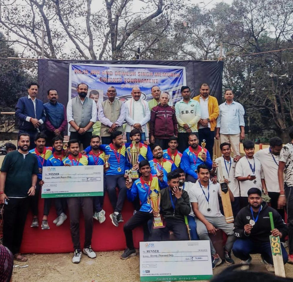 जमशेदपुर:खेल के प्रति समर्पण और दिवंगत खिलाड़ियों की स्मृति को जीवंत रखते हुए न्यू केबुल टाउन स्थित सेंट्रल पार्क (केबुल टाउन ग्राउंड) में आयोजित तीन दिवसीय ‘राजू झा एवं देवेश सिंह मेमोरियल क्रिकेट टूर्नामेंट’ का रविवार को भव्य समापन हुआ। फाइनल के रोमांचक मुकाबले में अदर-11 की टीम ने शानदार प्रदर्शन करते हुए खिताबी जीत हासिल की।