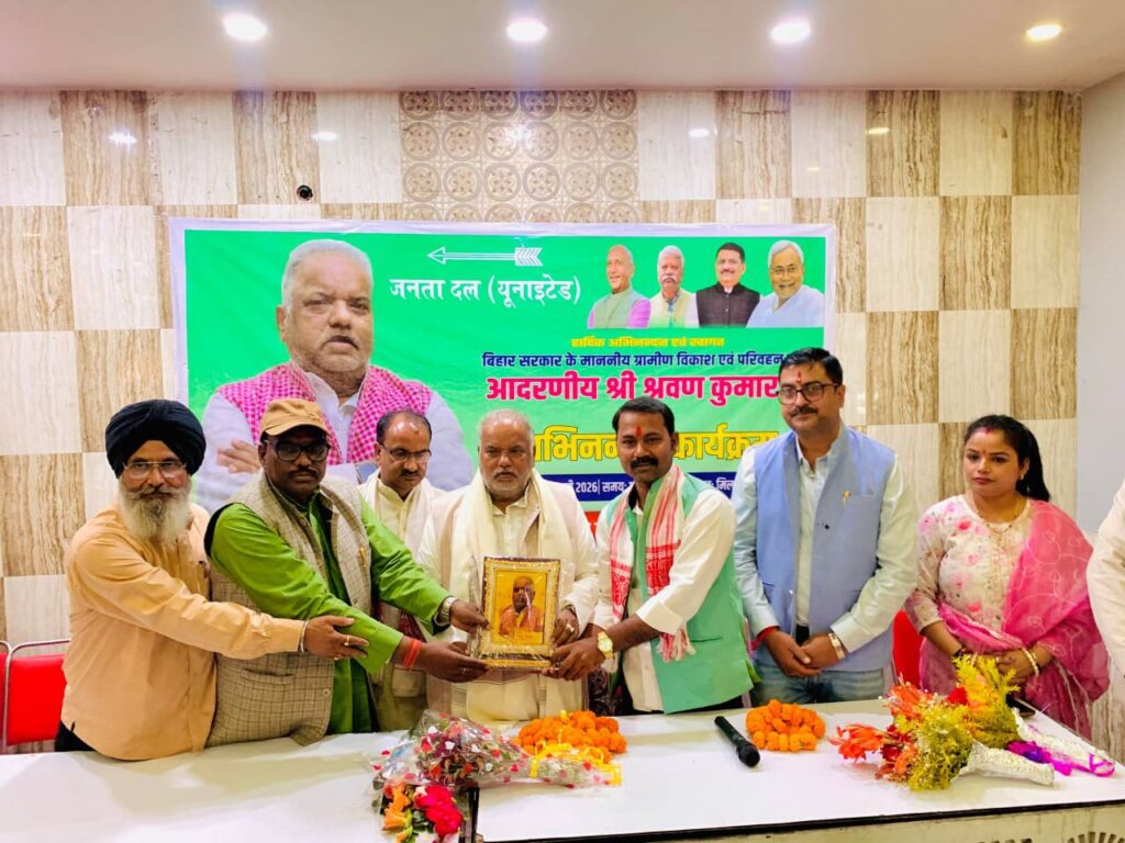 जमशेदपुर: बिष्टुपुर स्थित ऐतिहासिक मिलानी हॉल में मंगलवार को जनता दल यूनाइटेड (जदयू) जमशेदपुर महानगर की ओर से बिहार सरकार के ग्रामीण विकास एवं परिवहन मंत्री श्रवण कुमार के लिए एक भव्य अभिनंदन समारोह का आयोजन किया गया। कार्यक्रम में कार्यकर्ताओं का उत्साह देखते ही बना, जहाँ मंत्री का जोरदार स्वागत ढोल-नगाड़ों और फूलों की वर्षा के साथ किया गया।