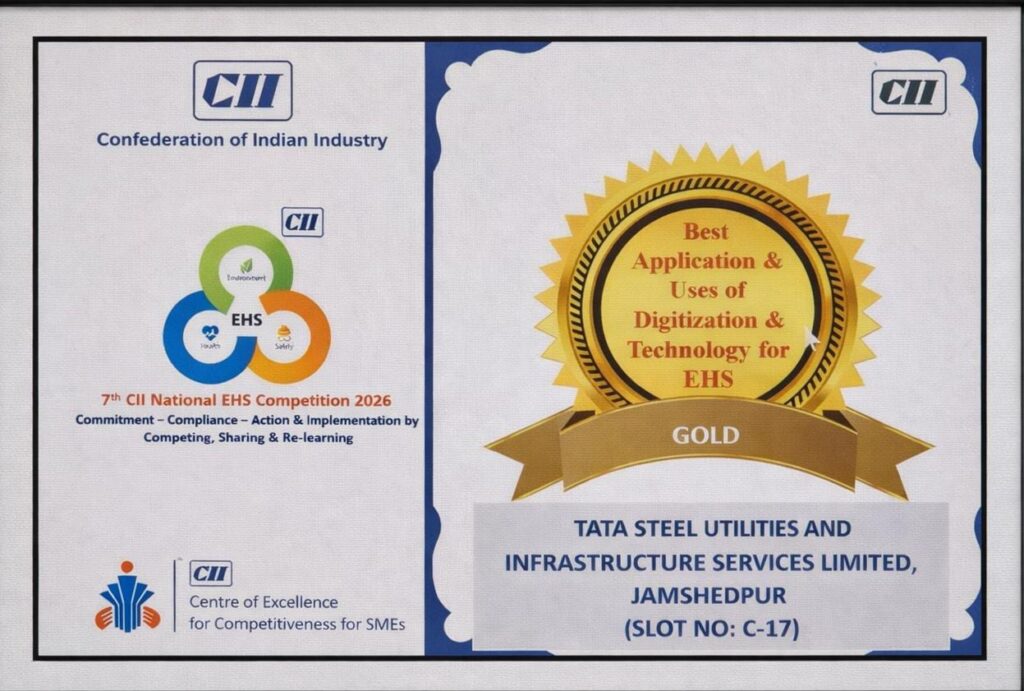 जमशेदपुर: शहर की स्वच्छता और बुनियादी ढांचा सेवाओं का संचालन करने वाली कंपनी टाटा स्टील यूआईएसएल (पूर्व में जुस्को) ने राष्ट्रीय स्तर पर एक बार फिर गौरव हासिल किया है। कंपनी के पब्लिक हेल्थ एंड सैनिटेशन विभाग को 7वें CII नेशनल EHS अवार्ड्स 2026 में प्रतिष्ठित गोल्ड अवार्ड से नवाजा गया है।यह सम्मान टाटा स्टील यूआईएसएल को(पर्यावरण, स्वास्थ्य और सुरक्षा के लिए डिजिटलीकरण और प्रौद्योगिकी का सर्वश्रेष्ठ अनुप्रयोग) श्रेणी के अंतर्गत प्रदान किया गया है।