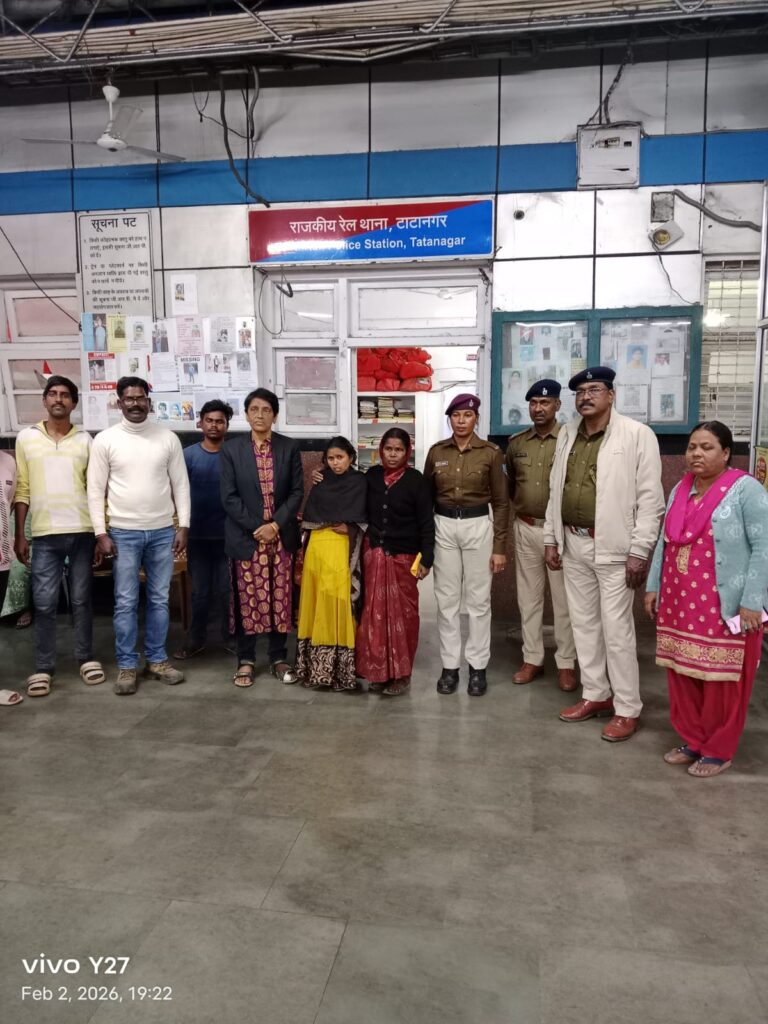 जमशेदपुर।टाटानगर रेल पुलिस की तत्परता और मानवीय संवेदनशीलता के कारण परसुडीह थाना क्षेत्र के ग्वालापट्टी से लापता एक मूक-बधिर युवती को सकुशल बरामद कर उसके परिजनों को सौंप दिया गया। युवती को चक्रधरपुर रेलवे स्टेशन से सुरक्षित बरामद किया गया, जिससे परिजनों में खुशी की लहर दौड़ गई।