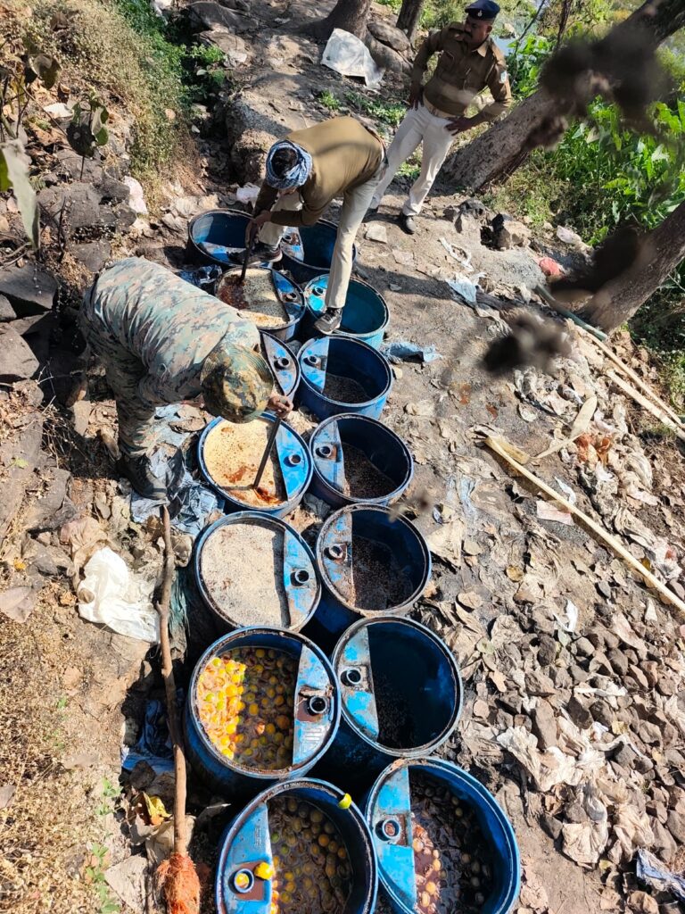 उत्पाद विभाग की इस विशेष कार्रवाई में शराब निर्माण के ठिकानों पर छापेमारी कर अवैध सामग्रियों को जब्त और विनष्ट किया गया।घटनास्थल पर अवैध शराब बनाने के लिए तैयार किया गया करीब 6000 किलोग्राम किण्वित जावा-महुआ मौके पर ही नष्ट कर दिया गया।छापेमारी के दौरान टीम ने कुल 40 लीटर अवैध चुलाई शराब बरामद की है।टीम ने अवैध चुलाई शराब की भट्ठियों को पूरी तरह ध्वस्त कर दिया, जिससे शराब माफियाओं के नेटवर्क को बड़ा झटका लगा है।