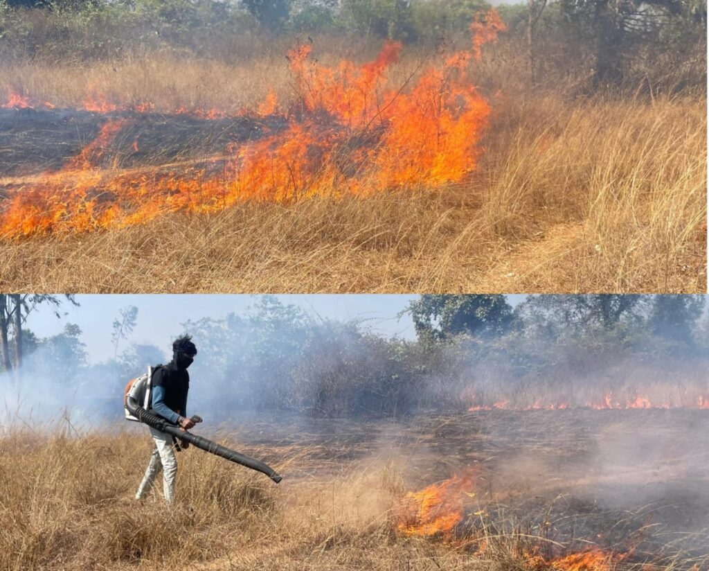 वन विभाग ने एयर ब्लोअर से पाया काबू