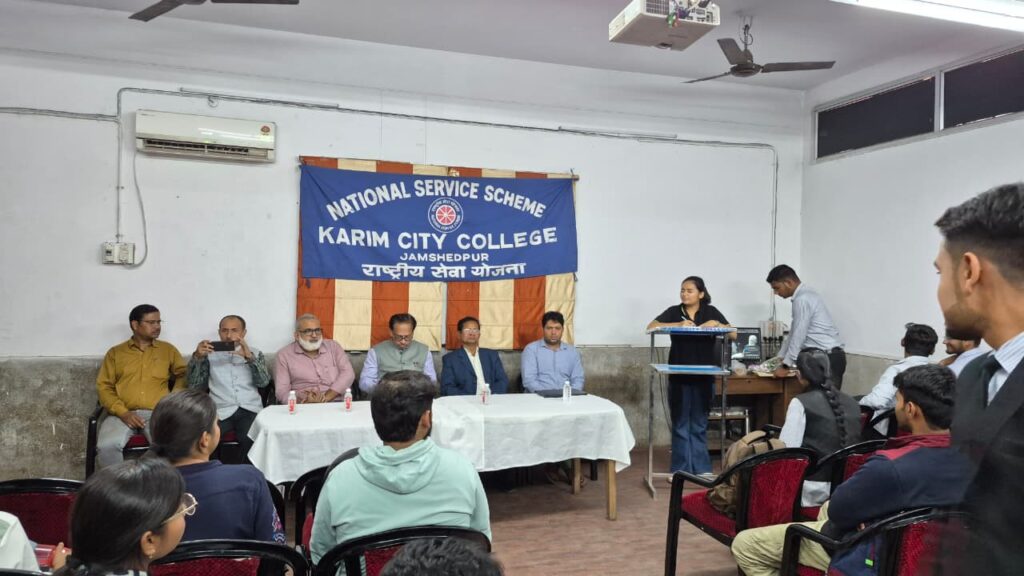 जमशेदपुर: साकची स्थित करीम सिटी कॉलेज में बुधवार को ‘टीबी मुक्त भारत’ अभियान के तहत एक महत्वपूर्ण जागरूकता कार्यक्रम का आयोजन किया गया। कॉलेज की एनएसएस इकाई और भूगोल विभाग के संयुक्त तत्वावधान में आयोजित इस कार्यक्रम का मुख्य उद्देश्य विद्यार्थियों के माध्यम से समाज में क्षय रोग (टीबी) के प्रति फैली भ्रांतियों को दूर करना और इसके उपचार के प्रति जागरूक करना था।