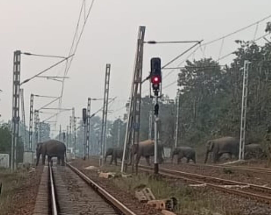 चाईबासा: चक्रधरपुर रेल मंडल के अंतर्गत आने वाले चाईबासा-डंगुवापोसी रेलमार्ग पर गुरुवार को उस वक्त अफरा-तफरी मच गई, जब हाथियों का एक विशाल झुंड अचानक रेलवे ट्रैक पर पहुंच गया। हाथियों की मौजूदगी के कारण इस व्यस्त रूट पर ट्रेनों का परिचालन घंटों बाधित रहा। सुरक्षा के मद्देनजर रेलवे ने तत्काल प्रभाव से ट्रेनों को नजदीकी स्टेशनों पर रोक दिया।