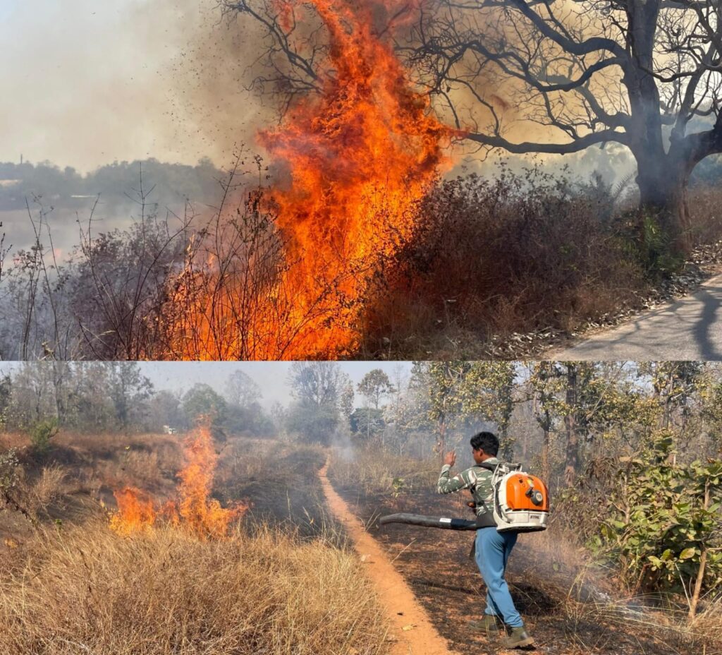 एयर ब्लोअर से वनकर्मियों ने पाया काबू