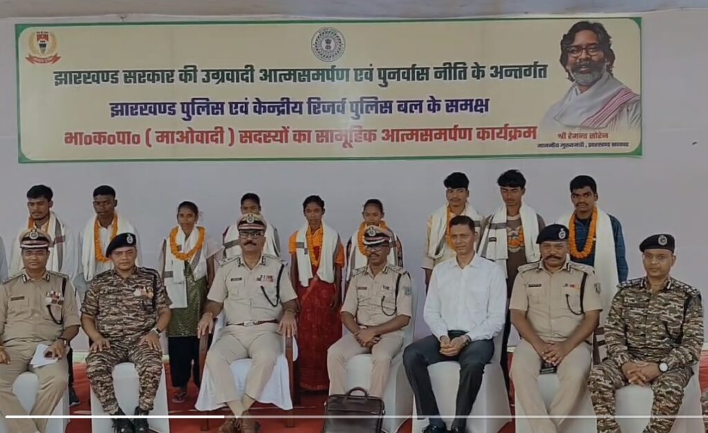 चाईबासा।झारखंड में नक्सल उन्मूलन की दिशा में गुरुवार को एक बड़ी सफलता मिली। चाईबासा पुलिस लाइन में आयोजित विशेष कार्यक्रम के दौरान भाकपा माओवादी संगठन के 10 सदस्यों ने झारखंड सरकार की उग्रवादी आत्मसमर्पण एवं पुनर्वास नीति के तहत आत्मसमर्पण किया। आत्मसमर्पण करने वालों में चार महिलाएं भी शामिल हैं। सभी नक्सलियों ने झारखंड पुलिस महानिदेशक अनुराग गुप्ता के समक्ष अपने हथियार डालते हुए मुख्यधारा में लौटने और समाज की सेवा करने की इच्छा प्रकट की।