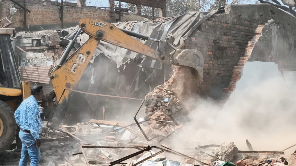 तीन बुलडोजरों ने शुरू की कार्रवाई