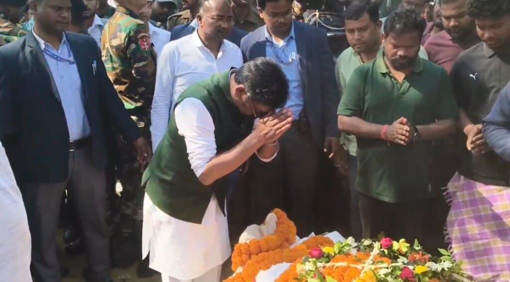 जिलिंगगोड़ा : राज्य के मुख्यमंत्री हेमंत सोरेन आज जिलिंगगोड़ा गांव पहुंचे और स्वर्गीय वीर सोरेन को अंतिम विदाई दी। मुख्यमंत्री के गांव पहुंचते ही शोक का माहौल और गहरा गया।मुख्यमंत्री ने दिवंगत के पार्थिव शरीर पर पुष्प अर्पित कर श्रद्धांजलि दी तथा शोक संतप्त परिजनों से मुलाकात कर उन्हें ढांढस बंधाया। उन्होंने वीर सोरेन की आत्मा की शांति के लिए प्रार्थना भी की।