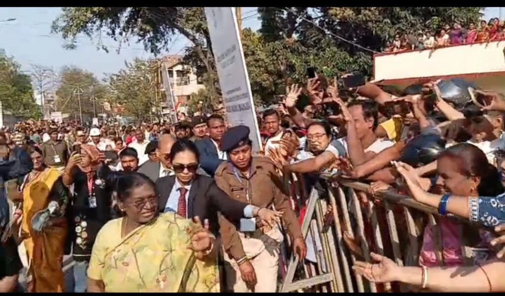 जमशेदपुर : राष्ट्रपति द्रौपदी मुर्मू का जमशेदपुर दौरा क्षणों का गवाह बना। कदमा के मरीन ड्राइव स्थित श्री जगन्नाथ मंदिर के भूमि पूजन के बाद, जब राष्ट्रपति बारीडीह स्थित मणिपाल टाटा मेडिकल कॉलेज पहुंचीं, तो वहां एक ऐसा नजारा दिखा जिसने सबका दिल जीत लिया। प्रोटोकॉल को किनारे रख राष्ट्रपति आम जनता के बीच पैदल चल पड़ीं।