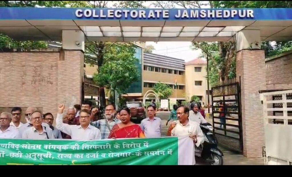 जमशेदपुर। लद्दाख के लोगों की संवैधानिक और न्यायपूर्ण मांगों के समर्थन में रविवार को जमशेदपुर में उपायुक्त कार्यालय के समक्ष झारखंडी समाज द्वारा जोरदार प्रदर्शन किया गया। प्रदर्शनकारियों ने लद्दाख की जनता के साथ पूर्ण एकजुटता व्यक्त की और पर्यावरणविद् सोनम वांगचुक की कथित अवैध हिरासत और केंद्र सरकार की नीतियों की कड़ी निंदा की।
